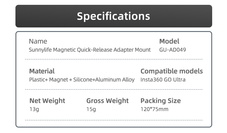 Name: Sunnylife Magnetic Quick-Release Adapter Mount