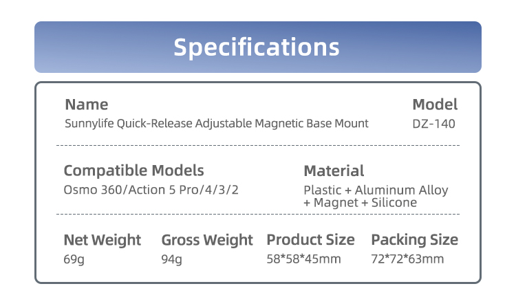 - Magnetic Base Mount & Adapter. Compatible with OSMO 360/Action 5 Pro/4/3/2.