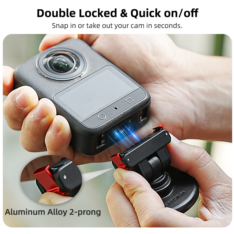 - Double Locked & Quick on/off. Snap in or take out your cam in seconds.