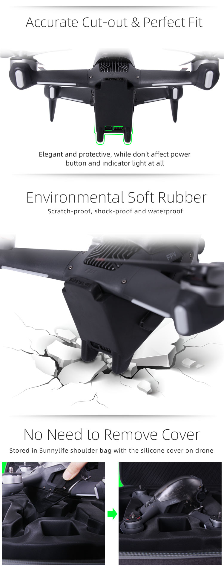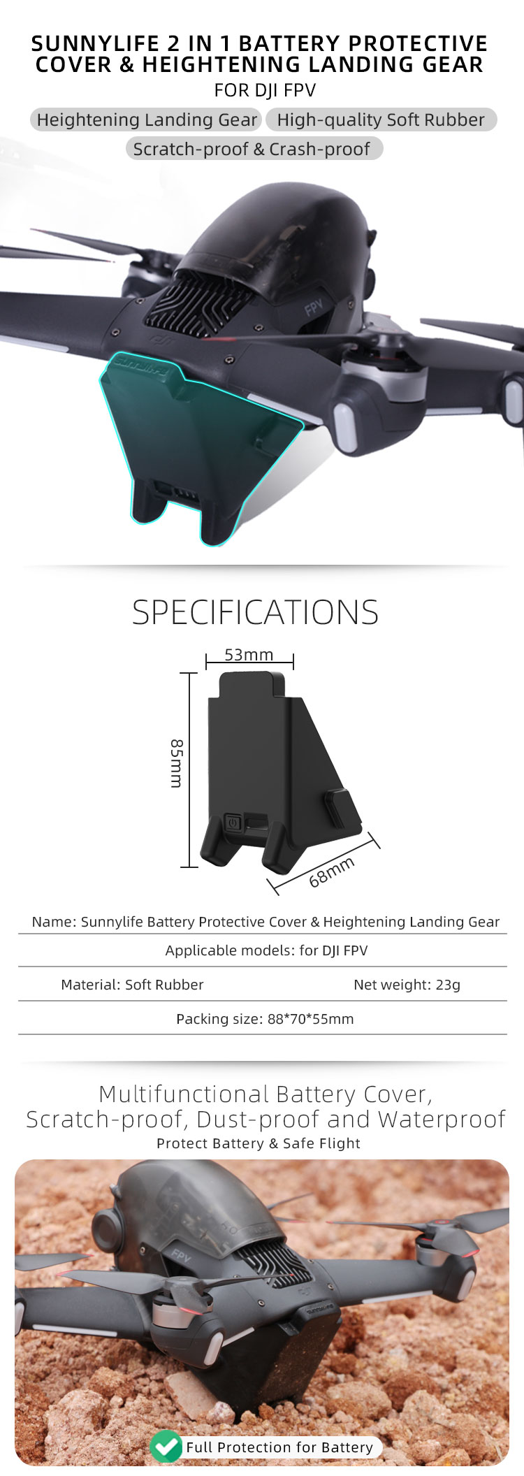 -Sunnylife 2 in 1 Battery Protective Cover & Heightening Landing Gear for DJI FPV.