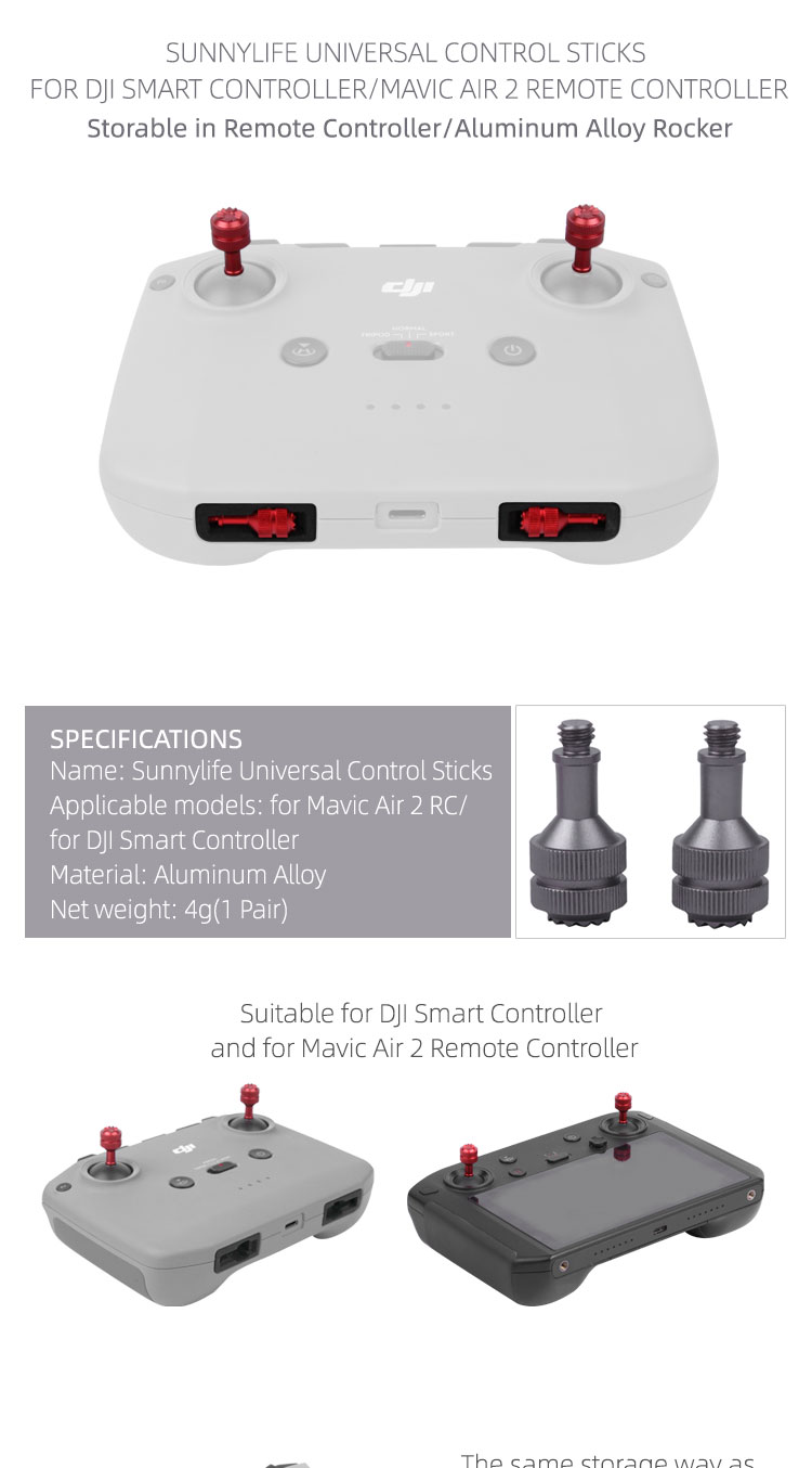 Sunnylife Universal Control Sticks for Mavic 3/Air 2S/Mini 2/DJI Smart Controller/Mavic Air 2 Remote Controller