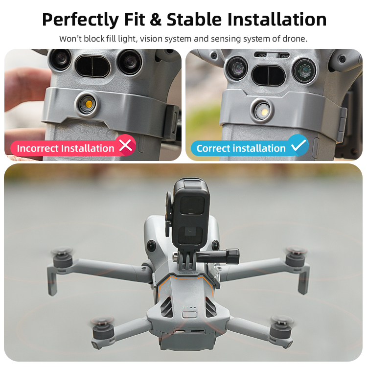 - Perfectly Fit & Stable Installation. Won't block fill light, vision system and sensing system of drone.