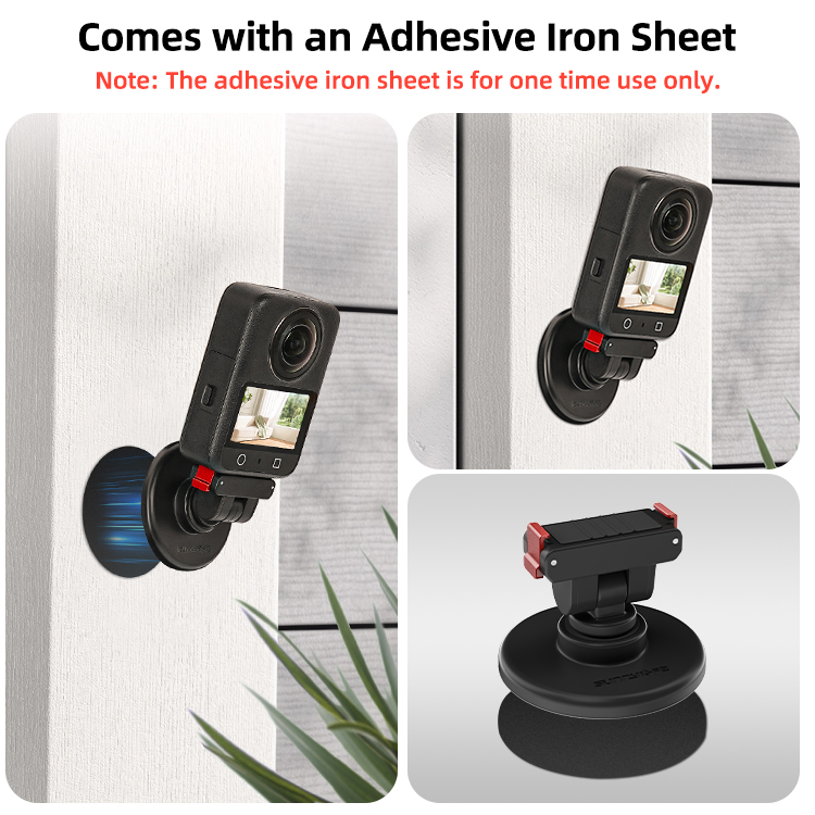 - The base and adapter are available for separate use. The magnetic base mount can be base mount for various action cameras, and the adapter can use with selfie stick, tripod and other 1/4” threaded accessories.