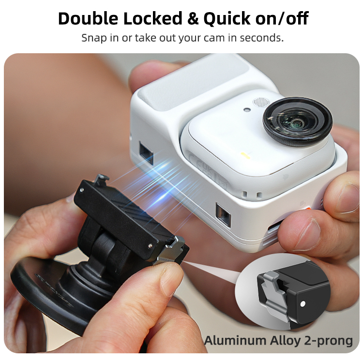 - Double Locked & Quick on/off. Snap in or take out your cam in seconds.