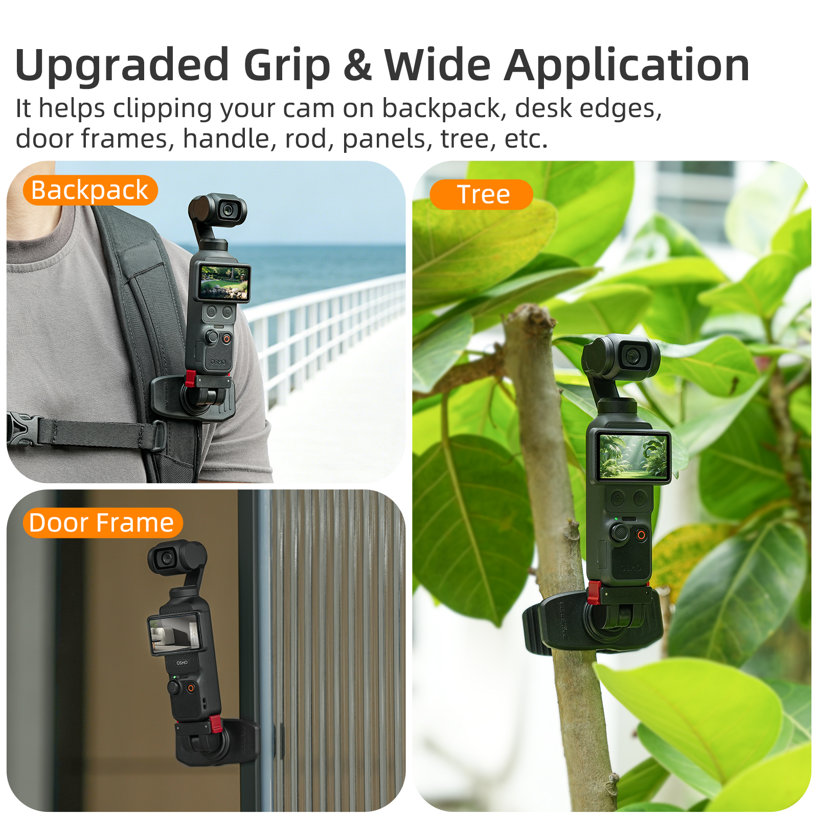 - Wide Expansion. It helps clipping your cam on backpack strap, cap side, and clothes, etc.
