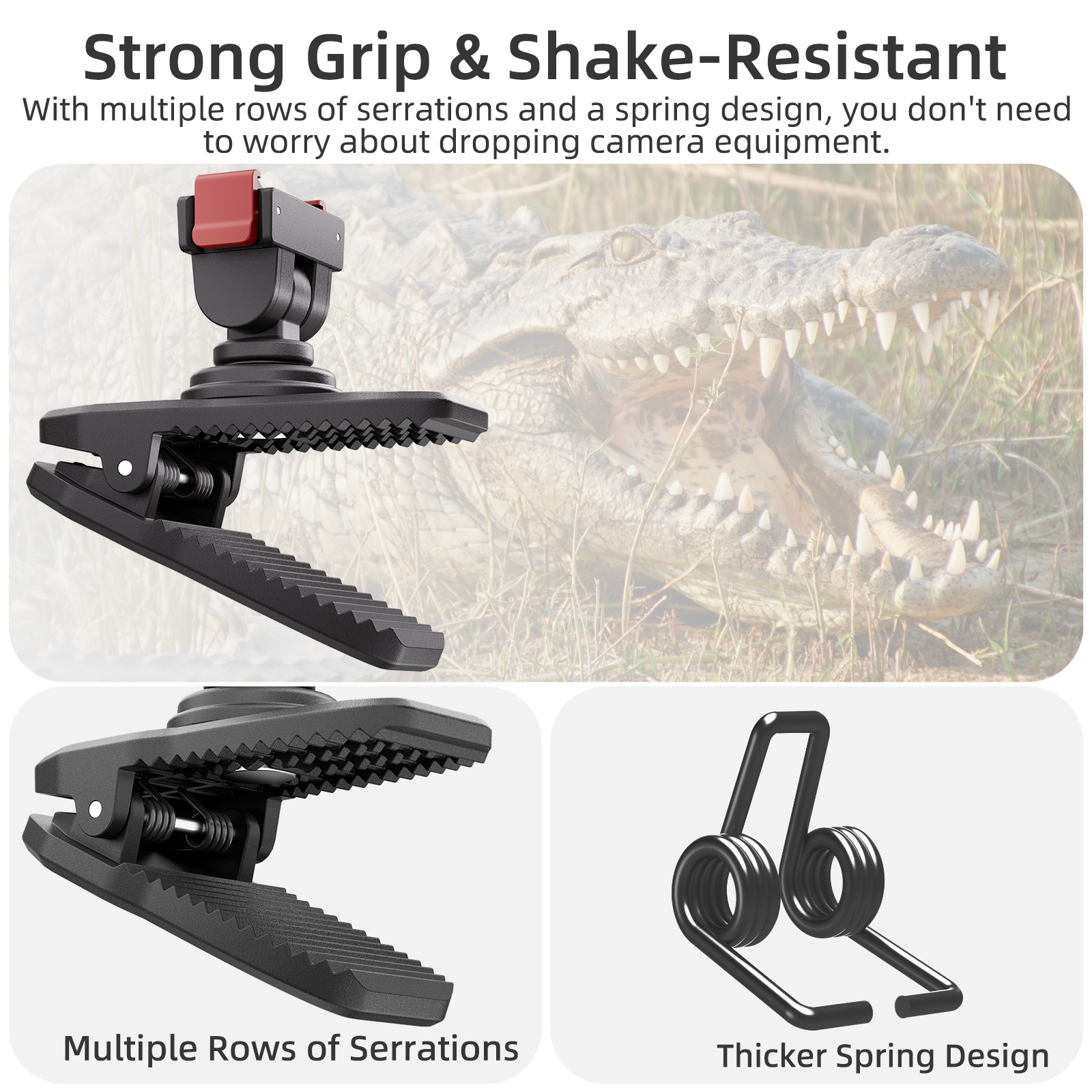 - Strong Grip & Shake-resistant. With multiple rows of serrations and a spring design, you don't need to worry about dropping camera equipment.
