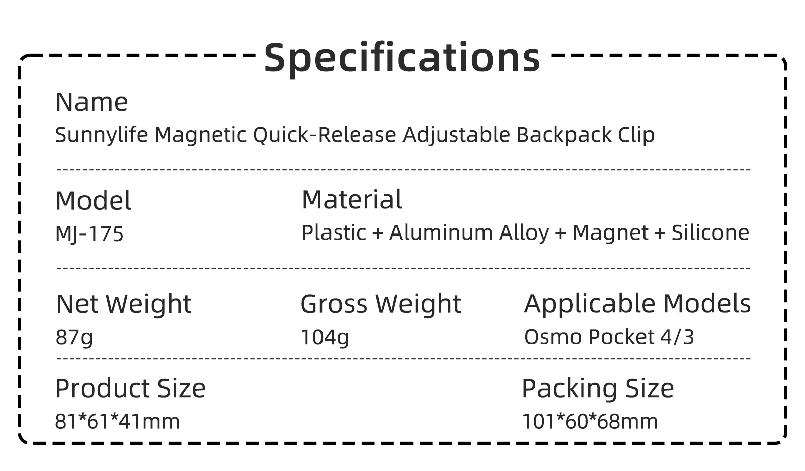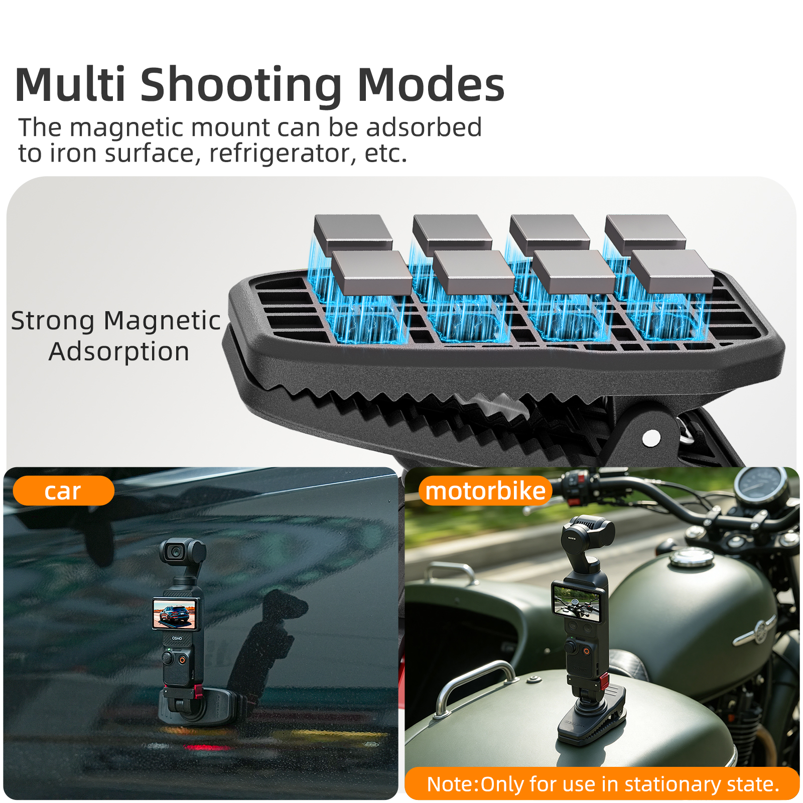 - Magnetic Adapter Mount & Backpack Clip. Compatible with Osmo Pocket 4/3.