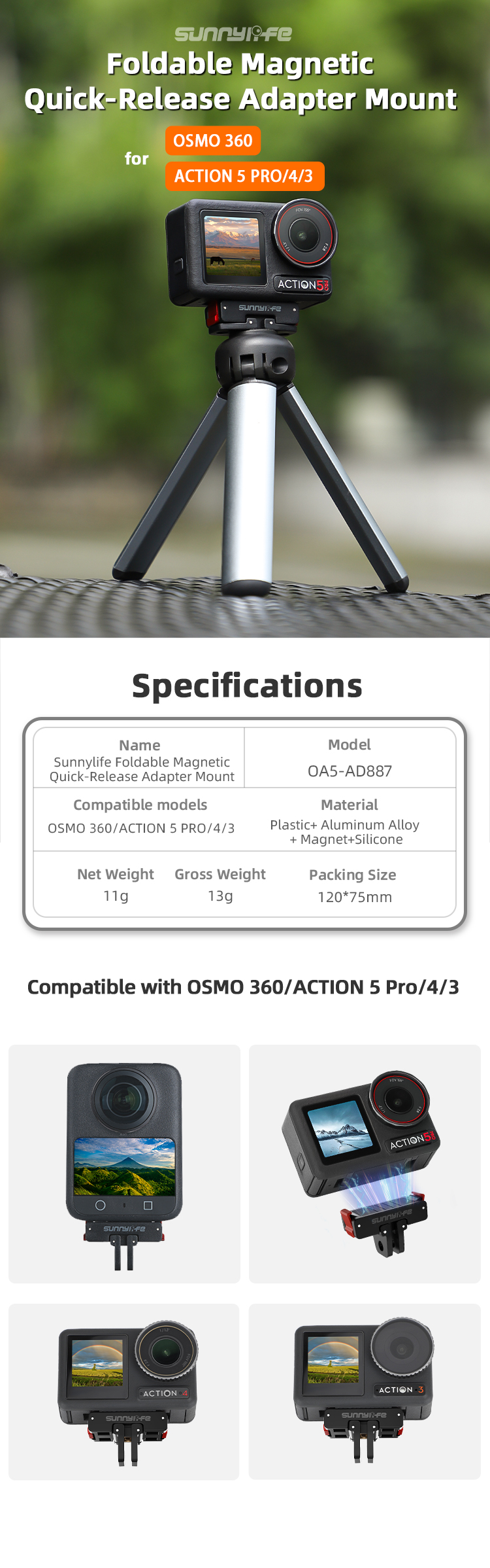 - Compatible with OSMO 360/ACTION 5 PRO/4/3.