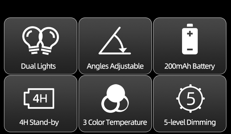 - 180° Flip & 360° Rotation. You can put the light toward your face or something ahead, which is really easy to achieve with our universal adjustable light.