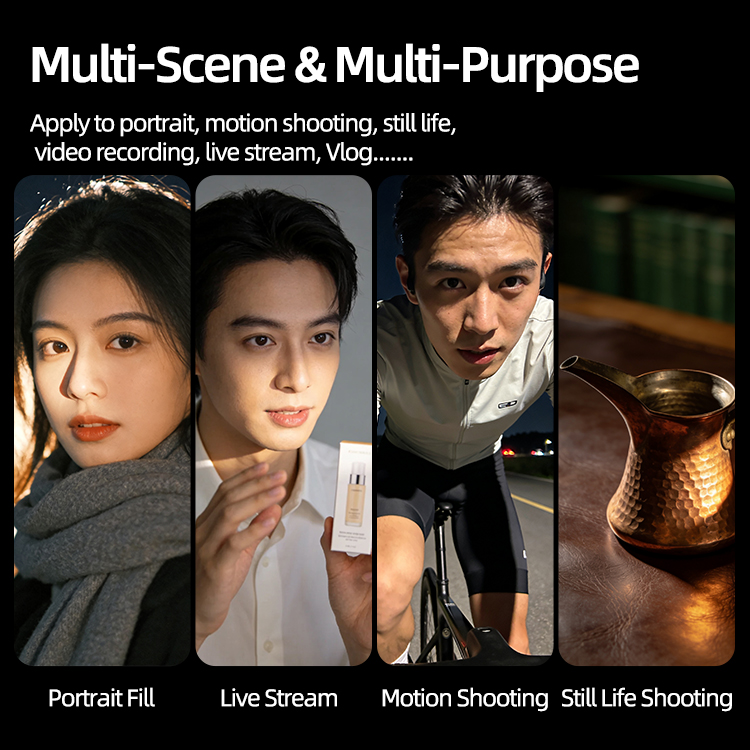 - Multi-Scene & Multi-Purpose. It can apply to portrait, motion shooting, still life, video recording, live stream, Vlog,etc,.