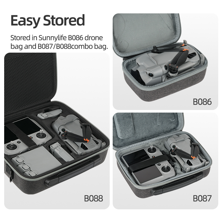 - Stored in Sunnylife B086 drone bag and B087/B088combo bag.