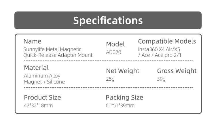 Name: Sunnylife Metal Magnetic Quick-Release Adapter Mount