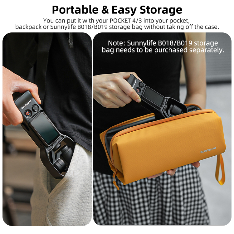 - Portable & Easy Storage. You can put it with your POCKET 4/3 into your pocket, backpack or Sunnylife B018/B019 storage bag without taking off the case.