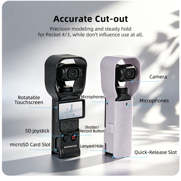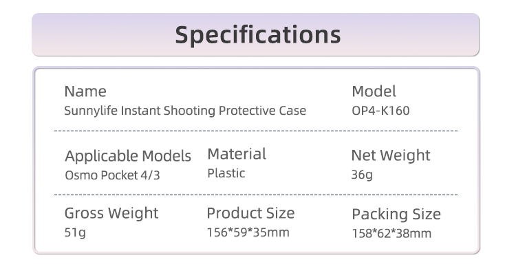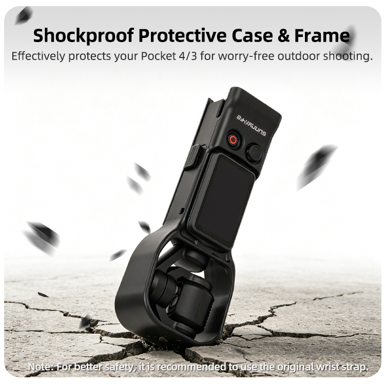- Shockproof Protective Case & Frame. Effectively protects your Pocket 4/3 for worry-free outdoor shooting.