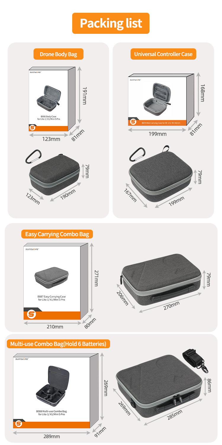 Sunnylife Carrying Case Combo Bag Drone Body Controller Bags Hard Travel Case Large Capacity Messenger Bag for Lito 1/X1/Mini 5 Pro