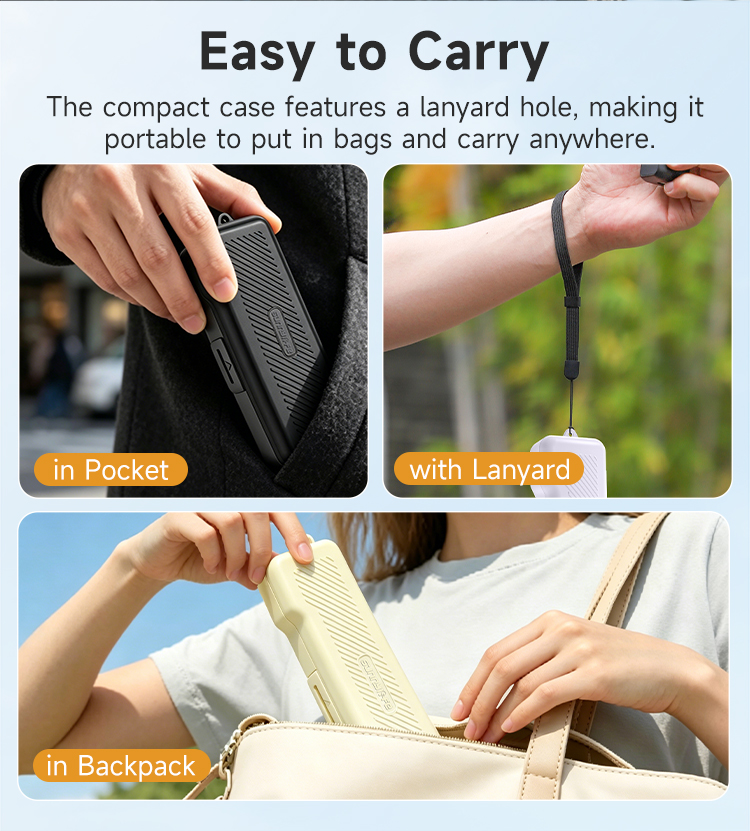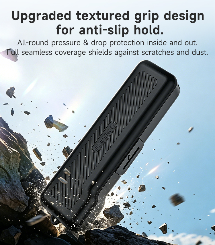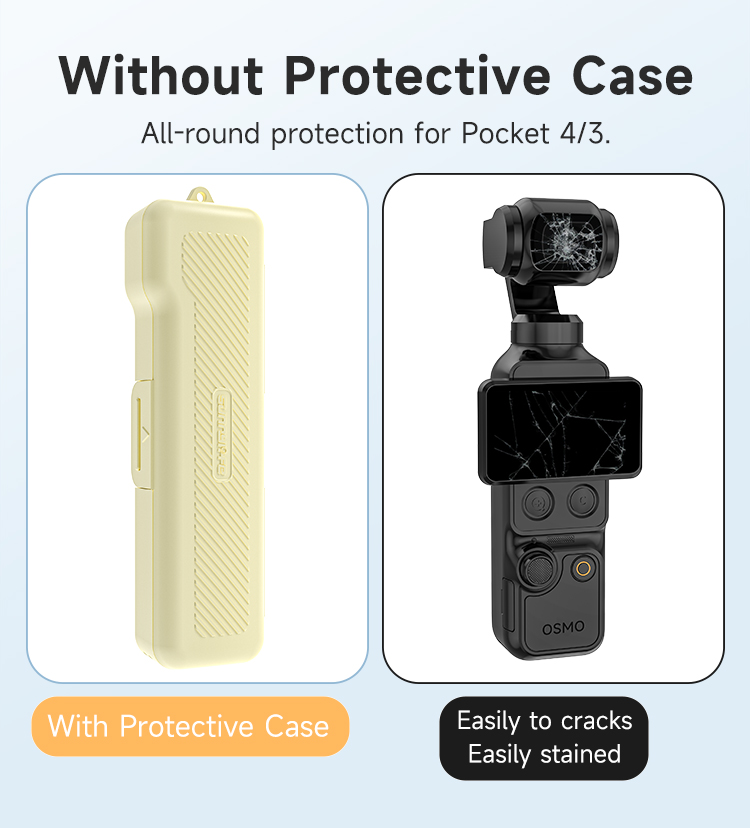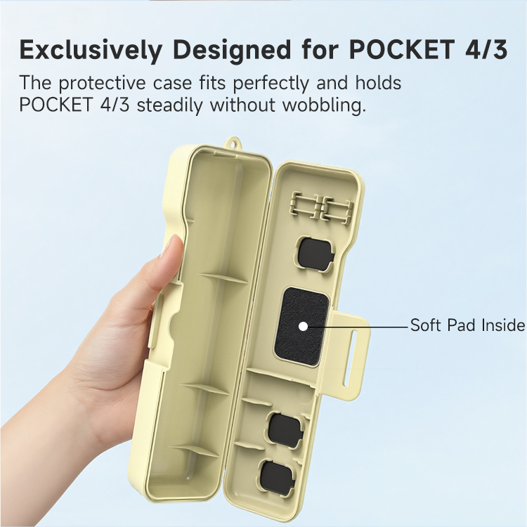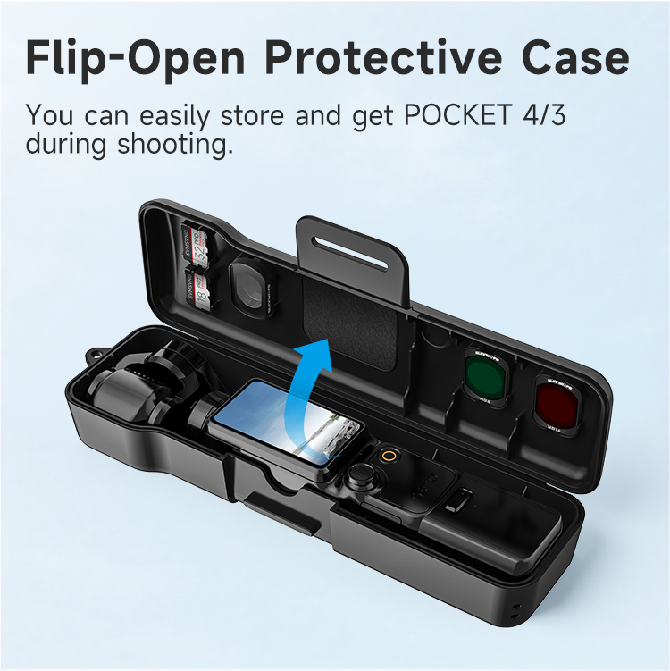 - Flip-Open Protective Case. You can easily store and get POCKET 4/3 during shooting.