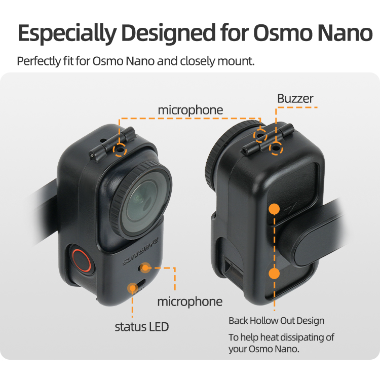 - Back Hollow Out Design.To help heat dissipating of your Osmo Nano.