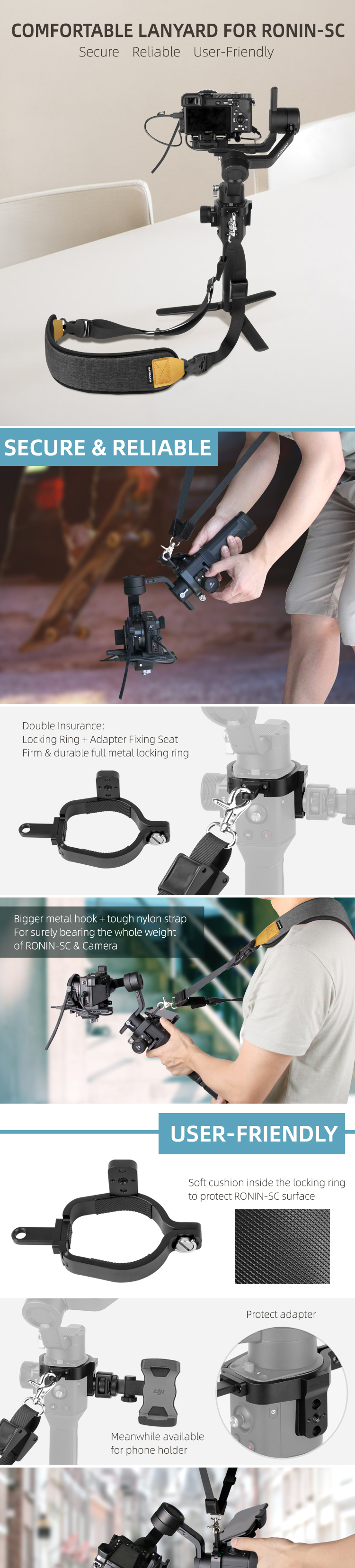 Bigger metal hook + tough nylon strap, for surely bearing the whole weight of RONIN-SC & Camera;