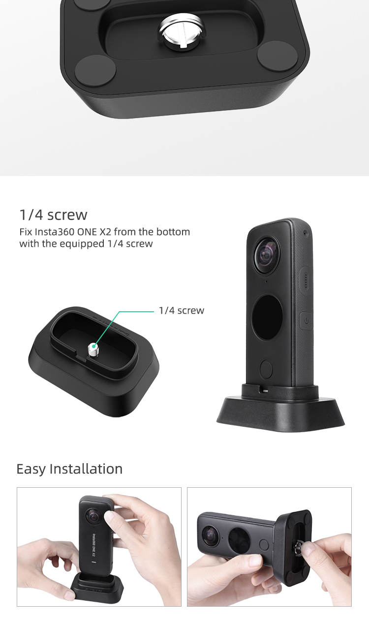 - Fix Insta360 ONE X2 from the bottom with the equipped 1/4 screw.