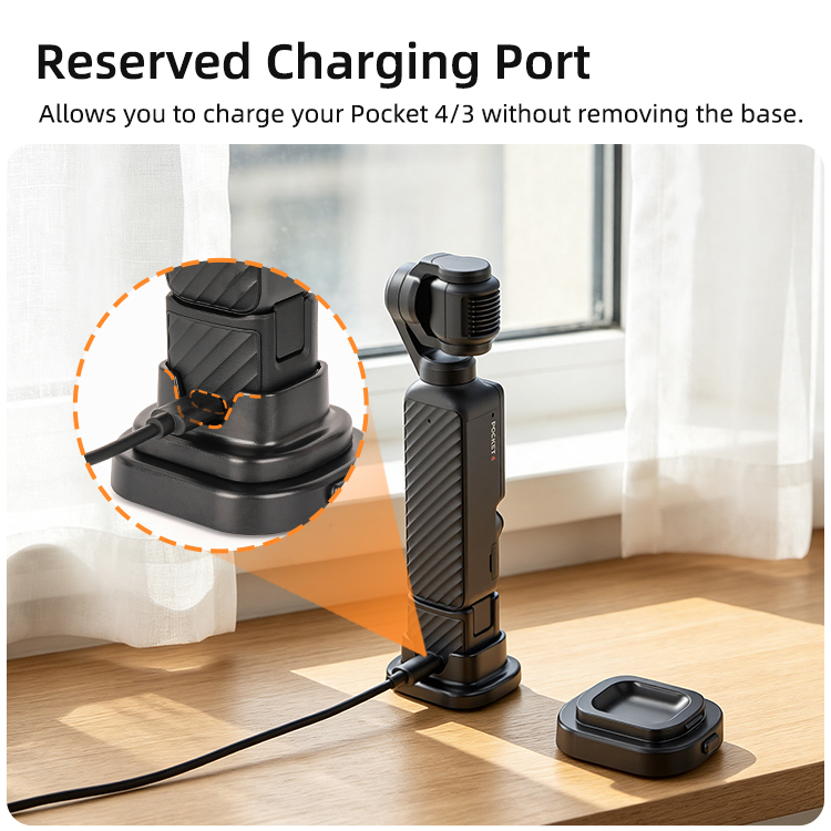 - Reserved Charging Port. Allows you to charge your Pocket 4/3 without removing the base.