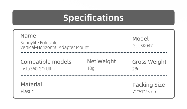 Name: Sunnylife Foldable Vertical-Horizontal Adapter Mount