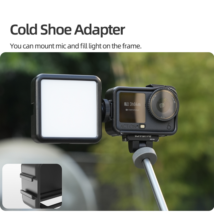 - Cold Shoe Adapter. You can mount mic and fill light on the frame.