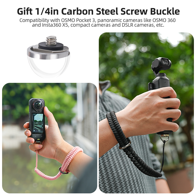 - Gift 1/4" Carbon Steel Screw Adapter. Wide compatible with POCKET 3/2, Action 6/5 Pro/4/3, OSMO NANO/OSMO 360, Insta360 X4 Air/X5/X4/X3/Go Ultra/Go 3/Go 3S/Ace Pro 2/1/Ace, GoPro series, compact cameras and DSLR cameras, etc.